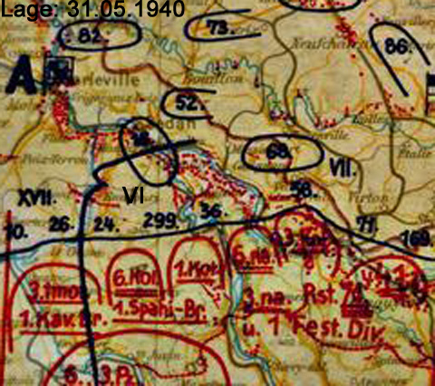 | 7. Infanterie-Division | Maschinengewehr-Bataillon 6 I. / Panzer-Regiment 25 Artillerie-Regiments-Stab z.b.V. 623 Stab / Pionier-Regiment 617 Brückenkolonne B 616 1. SS-Totenkopf-Verband "Oberbayern" |