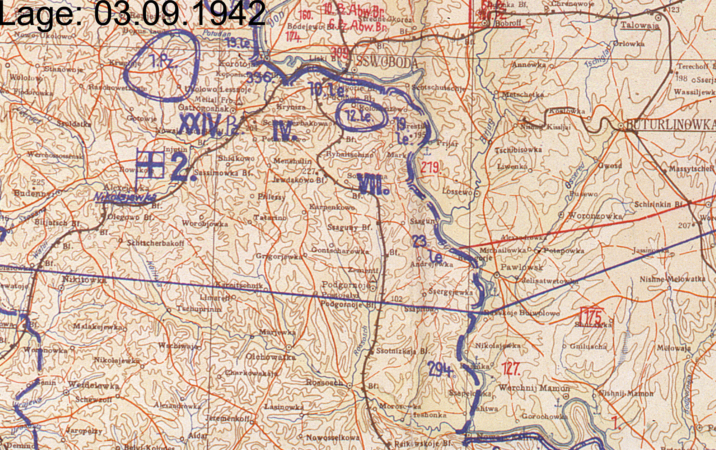 12., 22., 28., 30. und 32. Infanterie-Division sowie 3. Panzer-Division. Auftrag