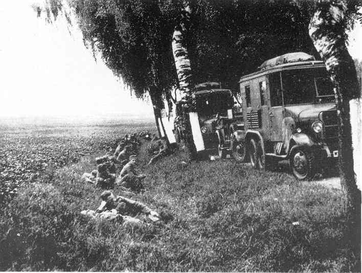 | Funkstelle im Wald | Rast auf dem Marsch. |