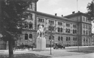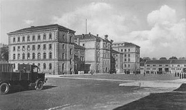 Denkmal vor der Kaserne 1938 Seitenansicht Hof der Kaserne