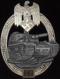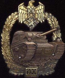 Am 13. Juli 1921 wurde vom Reichswehr-Minister "zur Erinnerung an die Leistungen der durch den Friedensvertrag aufgelösten Kampfwagenverbände" ein Kampfwagen-Abzeichen, für die ehemaligen Besatzungen der deutschen Kampfwagen, gestiftet. Auf Wunsch der Truppe wurde durch Generale der Panzertruppe, Kommandierende Generale, Panzer-Divisions- und Regiments-Kommandeure im Oktober 1939 ein Antrag "für die Einführung eines Panzerkampfwagen-Abzeichens und eines Panzerkampfwagen-Erinnerungsabzeichens" eingereicht. Daraufhin wurde das Panzer-Kampfabzeichen gestiftet.3 |