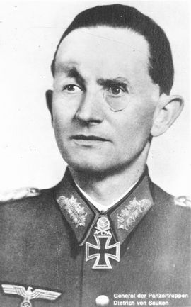 Dietrich von Saucken trat am 1. Oktober 1910 als Fahnenjunker in die Königlich Preußische Armee ein. Der Sohn eines Landrates kam dabei zum 2. Ostpreußisches Grenadier-Regiment "König Friedrich Wilhelm I" Nr. 3. Bei diesem wurde er am 19. Juni 1912 zum Leutnant befördert. Während des Ersten Weltkrieges bewährte er sich als Kompanieführer. Am 18. August 1917 wurde er zum Oberleutnant befördert. Insgesamt wurde er siebenmal verwundet. Im 1. Weltkrieg wurden ihm neben dem Ritterkreuz des Königlich Preußischen Hausordens von Hohenzollern mit Schwertern und beiden Eisernen Kreuzen noch weitere Auszeichnungen verliehen. Nach dem Krieg wurde er als Oberleutnant in das Reichsheer übernommen. Am 1. Oktober 1919 zum Reichswehr-Schützen-Regiment 1 vrsetzt. Auch beim 200.000 Mann-Übergangsheer im Frühjahr 1920 gehörte er noch immer zu diesem Stab. Bei der Bildung des 100.000 Mann-Heeres der Reichswehr wurde er dann in das 1. (Preuß.) Infanterie-Regiment übernommen. Dort wurde er anfangs als Kompanieoffizier eingesetzt. Am 15. Dezember 1921 wurde er dann in das 8. (Preuß.) Regiment versetzt. Am 1. Januar 1923 wurde er dann in die 3. Eskadron vom 2. (Preuß.) Reiter-Regiment nach Allenstein versetzt. Am 27. Juli 1923 hat er Elisabeth geborene von Saucken geheiratet. Am 1. April 1925 wurde er dann im Stab vom 2. (Preuß.) Reiter-Regiment in Allenstein zum Rittmeister befördert. In diesem Stab wurde er dann über längere Zeit eingesetzt. Im Frühjahr 1927 gehörte er dann zur Ausbildungs-Eskadron vom 2. (Preuß.) Reiter-Regiment ebenfalls in Allenstein. Im Frühjahr 1928 gehörte er dann zur 6. Eskadron vom 2. (Preuß.) Reiter-Regiment in Königsberg. 1928/29 wurde er für die nächsten Jahre zum Chef der 2. Eskadron vom 2. (Preuß.) Reiter-Regiment in Lyck ernannt. Diese wurde bereits 1929/30 nach Osterode in Ostpreußen verlegt. Am 1. April 1934 wurde er zum Major befördert. Als solcher wurde er ab dem 1. Mai 1934 als Taktiklehrer an der Kriegschule in Hannover eingesetzt. Am 1. Oktober 1936 wurde er dort zum Oberstleutnant befördert. Am 1. April 1937 wurde er als Nachfolger von Oberst Alex Goeschen zum Kommandeur vom Reiter-Regiment 2 in Angerburg ernannt. Am 1. Juni 1939 wurde er zum Oberst befördert. Bei Beginn des 2. Weltkrieges führte er sein Regiment im Sommer 1939 in den Polenfeldzug. Bereits in diesem wurden ihm beide Spangen zu seinen Eisernen Kreuzen verliehen. Auch beim Westfeldzug im Frühjahr 1940 führte er das Reiter-Regiment 2. Am 1. Oktober 1940 gab er sein Kommando ab und wurde dafür in die Führerreserve versetzt. Im November 1940 wechselte von Saucken zur modernen Panzerwaffe und übernahm als Kommandeur die 4. Schützen-Brigade. Beim Überfall auf die Sowjetunion führte er diese im Sommer 1941 in den Ostfeldzug. Dort wurde von Saucken am Dnjepr verwundet. Ende Dezember 1941 wurde er dann mit der Führung der 4. Panzer-Division beauftragt. Am 1. Januar 1942 wurde er zum Generalmajor befördert. Damit wurde er dann auch zum Kommandeur der 4. Panzer-Division ernannt. Für die Erfolge der Division bei der Abwehrschlacht um Bolchow wurde von Saucken am 6. Januar 1942 mit dem Ritterkreuz des Eisernen Kreuzes ausgezeichnet. Wenige Tage später wurde er schwer verwundet und musste wegen einer Einweisung ins Lazarett das Kommando über die Division abgeben. Nach seiner Genesung wurde von Saucken im August 1942 Kommandeur der Panzertruppenschule in Krampnitz. Am 1. April 1943 wurde er zum Generalleutnant befördert. Im Mai 1943 kehrte von Saucken an die Front zurück und wurde wieder zum Kommandeur der 4. Panzer-Division ernannt. Als er an der Spitze seiner Division einen russischen Großangriff auf die 9. Armee aus der Bewegung heraus abwehrte, wurde ihm am 22. August 1943 das Eichenlaub zum Ritterkreuz des Eisernen Kreuzes verliehen. Am 3. Dezember 1943 wurde er namentlich im Wehrmachtsbericht genannt: "In den zähen und erbitterten Abwehrkämpfen der vergangen Tage haben sich die main-fränkische 4. Panzerdivision unter Generalleutnant v. Saucken und die bayerische 296. Infanteriedivision unter Generalleutnant Kullmer bei schwierigsten Kampfverhältnissen alle Durchbruchsversuche der Sowjets vereitelt." Am 31. Januar 1944 folgte die Verleihung der Schwerter zum Ritterkreuz mit Eichenlaub, nachdem es von Saucken mit seiner 4. Panzer-Division gelungen war, einen Durchbruch der Roten Armee abzuriegeln. Im Anschluss war von Saucken mit seiner Division am Entsatz der eingeschlossenen Stadt Kowel beteiligt. Im Mai 1944 wurde von Saucken mit der Führung vom Generalkommando III. Panzerkorps beauftragt. Als die russische Großoffensive im Juni 1944 losbrach, wurde von Saucken mit der Führung des XXXIX. Panzerkorps beauftragt, welches er bei den schweren Abwehrschlachten im Osten führte. Am 5. Juli 1944 wurde er wegen der Kämpfe nordwestlich von Kiew erneut namentlich im Wehrmachtsbericht genannt: "Hier schoß eine Panzerkampfgruppe unter Führung des Generalleutnants von Saucken in beweglicher Kampfführung in der Zeit vom 27. Juni bis 3. Juli 232 feindliche Panzer ab." Am 1. August 1944 wurde er zum General der Panzertruppen befördert. Damit wurde er dann auch zum Kommandierenden General vom Generalkommando XXXIX. Panzerkorps ernannt. Als solcher führte von Saucken das Korps während der Schlacht um Warschau, sein Korps vernichtete dabei über 200 russische Panzer. Mitte Oktober 1944 gab er sein Kommando ab und wurde in die Führerreserve versetzt. Im Dezember 1944 stellte von Saucken aus den Divisionen Großdeutschland und Brandenburg ein neues Panzerkorps auf. Mit diesem Panzerkorps Großdeutschland nahm er an den Schlachten bei Rastenburg und Litzmannstadt teil und hatte erheblichen Anteil an der Rettung der eingeschlossenen "Gruppe Nehring" an der Weichsel. Nachdem sich von Saucken mit dem Generalstabschef des Heeres Generaloberst Heinz Guderian über die Sinnlosigkeit einer weiteren Kriegsführung gestritten hatte, wurde von Saucken in die Führerreserve ver