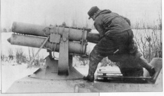 | Der Panzerwerfer im Winter. | Panzerwerfer werden feuerbereit gemacht. |