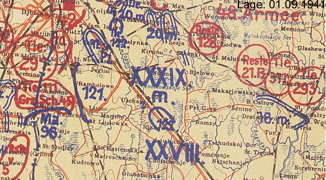 | 25. August | XXVIII | 16. Armee | Nord | Wolchow (Lagekarte) (Lagekarte) (Lagekarte) (Lagekarte) |