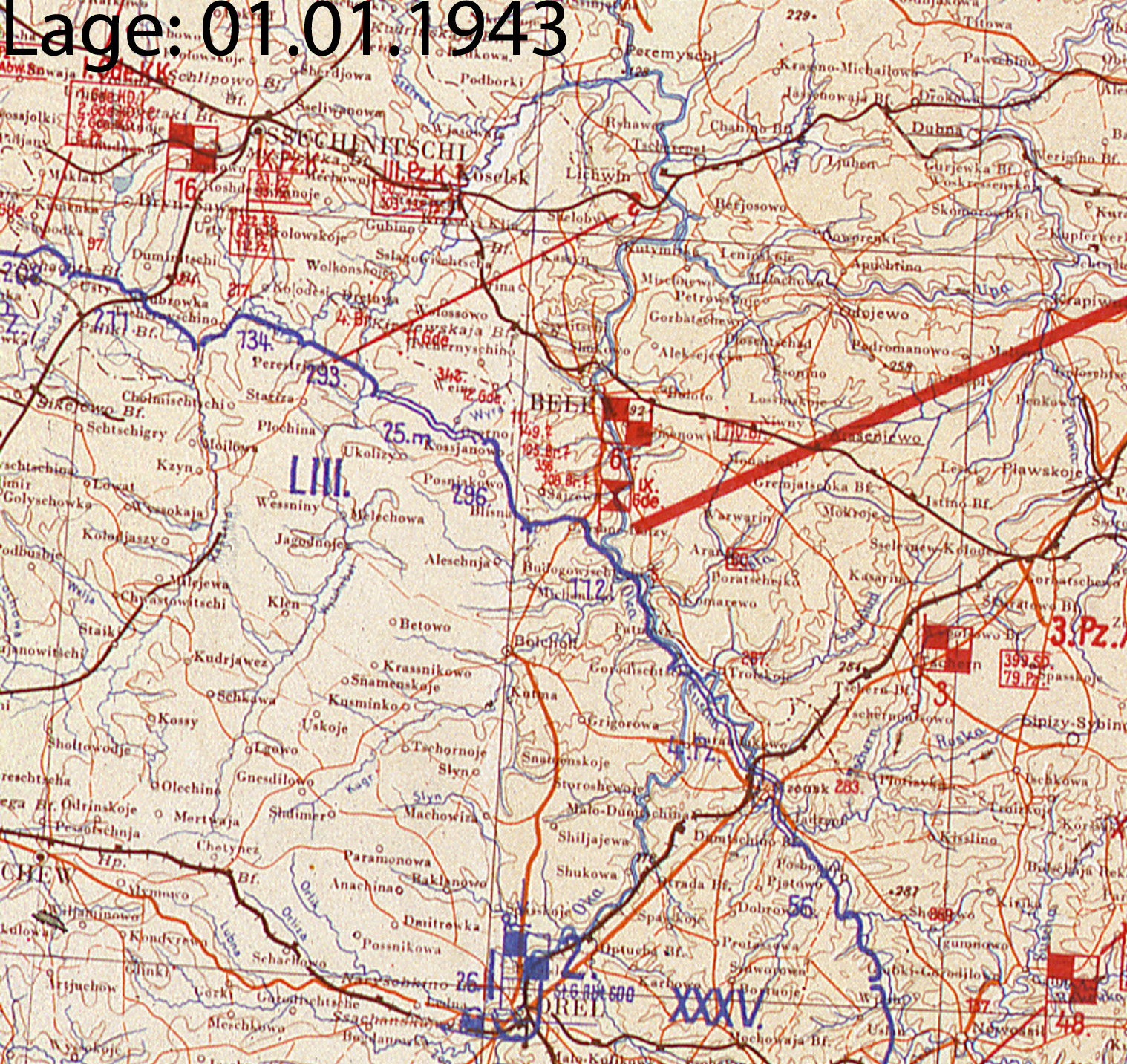 | 1. Januar | LIII | 2. Panzerarmee | Mitte | Orel (Lagekarte) (Lagekarte) (Lagekarte) |