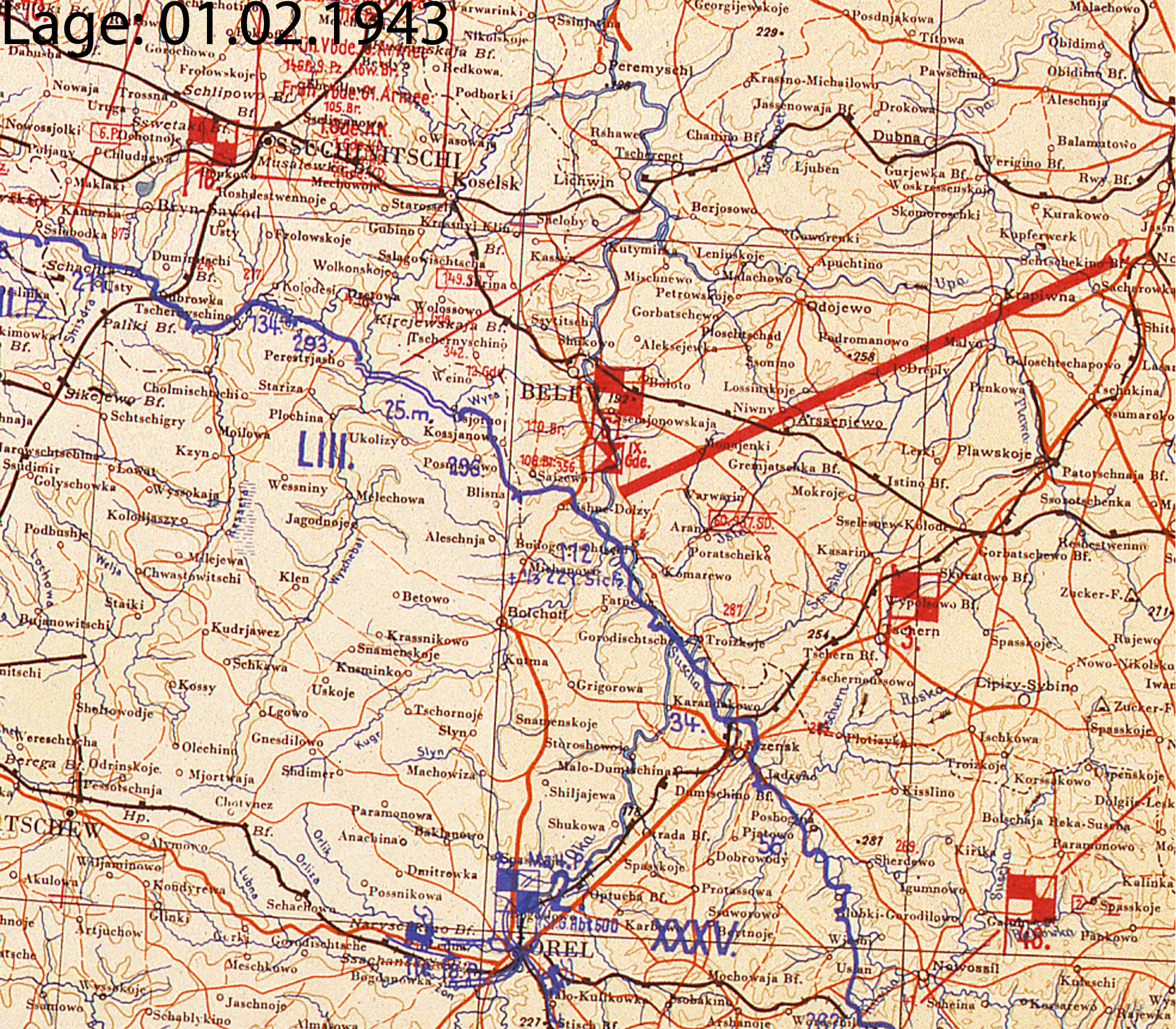 | 23. Januar | XXXXVII | 2. Panzerarmee | Mitte | Orel (Lagekarte) (Lagekarte) |
