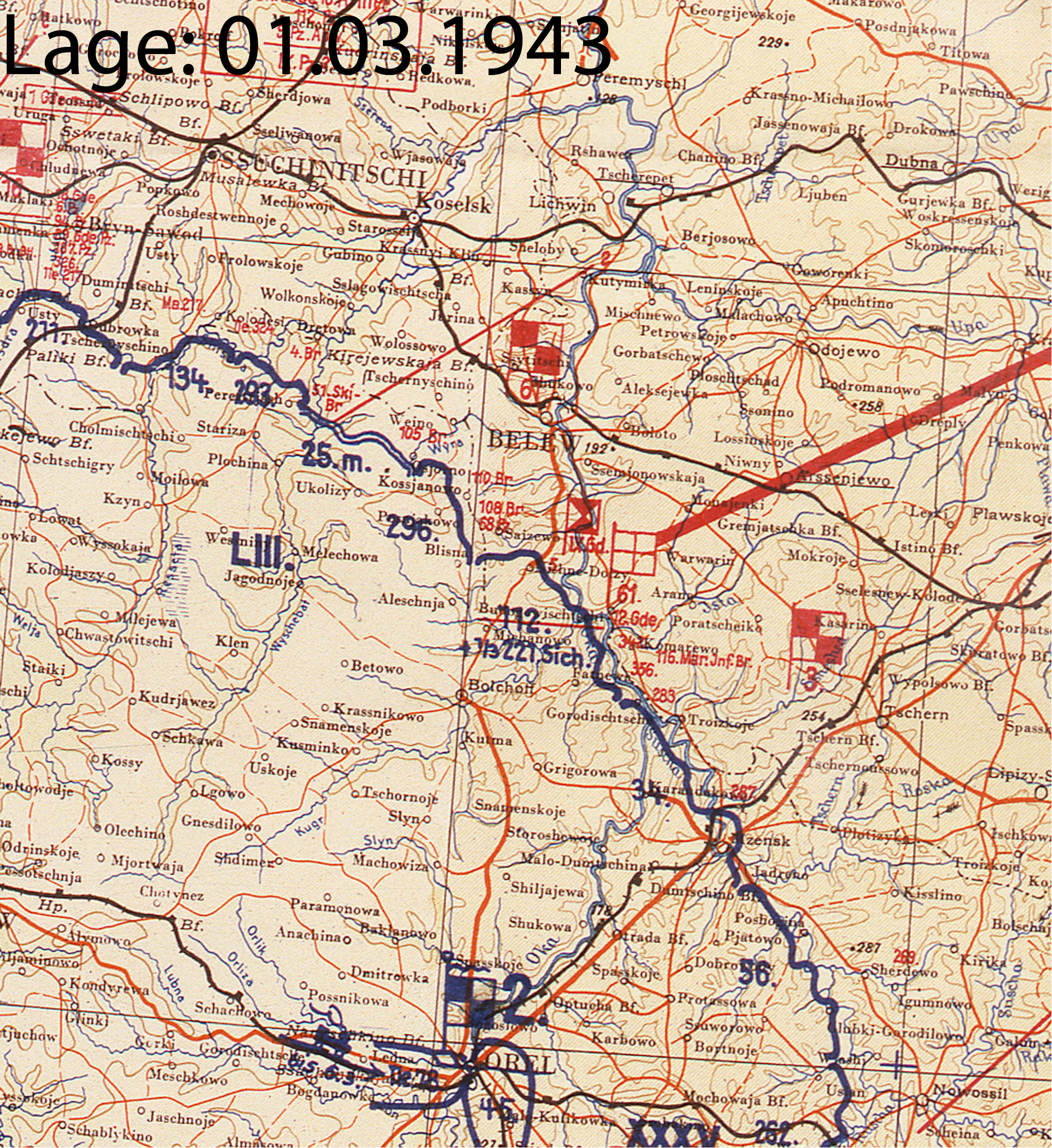 | 28. März | LV | 2. Panzerarmee | Mitte | Shisdra (Lagekarte) (Lagekarte) (Lagekarte) (Lagekarte) (Lagekarte) |