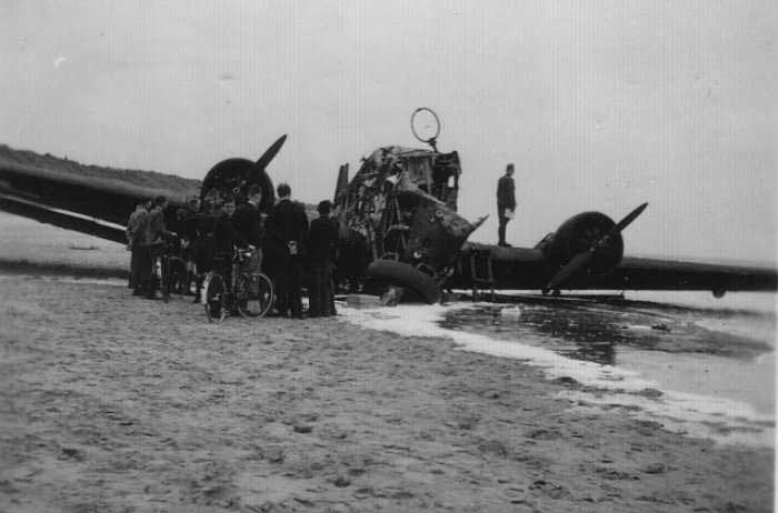 | Nach schwerem Beschuß mußte dieses Maschine am Strand von Luisduinen notlanden. |