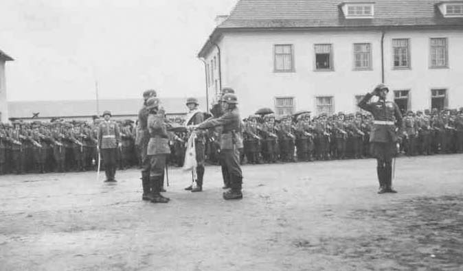 | Vereidigung der 9. Kompanie. | Der Fahneneid. Der Besitzer des Fotos hat sich links markiert. |