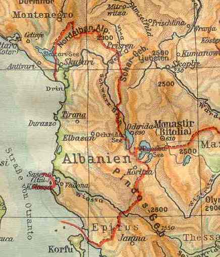 Der Staat Albanien rief am 28. November 1912 während der Balkankriege seine Unabhängigkeit aus, die am 30. Juli 1913 in Folge des Londoner Vertrages anerkannt wurde. 1914 wurde der deutschstämmige Wilhelm zu Wied als Fürst von Albanien gekrönt. Seine Amtszeit sollte jedoch nur sechs Monate andauern. Griechen riefen im Süden den Staat „Nordepirus“ aus, in Mittelalbanien führten albanische Muslime einen Aufstand gegen die neue Regierung und das Land versank im Chaos. Im Ersten Weltkrieg und bis 1920 war das neutral deklarierte Albanien von kriegführenden Mächten besetzt. Mit dem Kongress von Lushnja 1920 konnte Albanien erste Ansätze einer neuen Staatsorganisation schaffen und seine erste demokratische Verfassung vorweisen. Im selben Jahr folgte die Aufnahme in den Völkerbund. 1921 kamen die von Griechenland besetzten Gebiete per internationalem Beschluss wieder an Albanien. Von 1920 bis 1925 wechselten sich die Regierungen in Albanien in schneller Folge immer wieder ab. Unter Fan Noli scheiterte der Versuch, eine demokratische Republik zu errichten. 1925 wurde das Fürstentum Albanien in eine de jure demokratische, de facto jedoch diktatorische Republik transformiert. Von 1925 bis 1939 folgte eine Phase der autoritären Herrschaft des Ahmet Zogu, der sich 1928 zum König der Albaner proklamierte und Albanien in eine konstitutionelle Monarchie umwandelte. Um den Feindseligkeiten mit den benachbarten Staaten zu entkommen, machte sich Zogu daran, die Verhältnisse mit dem Königreich Italien zu verbessern. Das faschistische Regime übte großen Einfluss auf Albanien aus, was sich Benito Mussolini im Ersten und Zweiten Tiranapakt erkaufte und im April 1939 in der Besetzung des Landes durch Italien gipfelte. Im Zweiten Weltkrieg war Albanien bis zur Kapitulation Italiens im September 1943 von Italien besetzt. Nach der Kapitulation Italiens im September 1943 wurde Albanien von der Wehrmacht besetzt. Als territorialer Befehlshaber wurde General der Artillerie Geib eingesetzt, dessen Befehlsbereich anfänglich auch Montenegro mit umfaßte. Aus politischen Gründen wurde dieses Land aber sehr bald wieder verselbständigt. Die endgültig in Albanien eingesetzte bodenständige Dienststelle des „Deutschen bevollmächtigten Generals in Albanien“ (DGA) war KStN-mäßig nun mehr als Divisionsstab ausgestattet. Im Oktober 1943 trafen drei Feldkommandanturen (FK), 1030, 1039 und 1040 aus der Heimat ein, die mit den endgültigen Stabsitzen in Tirana, Prizren und Struga unter dem DGA die territoriale Gewalt in der Mittelinstanz ausübten. Die FK Prizren verwaltete das Kosovo-Gebiet, die FK Tirana im wesentlichen die Küstentiefebene Altalbaniens von Valona bis zu montenegrinischen Grenze und den Bezirk Elbasan, die FK Struga den östlichen, an Bulgarien angrenzenden Teil Albaniens. Der südlichste Zipfel des Landes, schon vom griechisch-albanischen Krieg her ein fortdauernder Brandherd, wurde erst vorübergehend im Hochsommer 1944 freigekämpft. Eine dann aus den bestehenden drei Feldkommandanturen gebildete vierte FK, die diesen Teil umfassen sollte, mit dem vorgesehenen Stabssitz in Korça, kam zwar noch zur Aufstellung, aber nicht zum praktischen Arbeiten, da die Entwicklung im Herbst über dieses Vorhaben zur Tagesordnung überging. Albanien war strategisch von untergeordneter Bedeutung, weshalb auch nur wenig deutsche Truppen in Albanien stationiert wurden. Neben der 21. Waffen-Gebirgs-Division der SS Skanderberg (alb. Nr. 1) lagen vor allem Luftwaffeneinheiten auf verschiedenen Fliegerhorsten. Bis 1944 führten Albaner einen Partisanenkrieg gegen die italienischen und später deutschen Besatzer. Diese hatten dem albanischen Marionettenstaat auch Teile Kosovos, Nordmazedoniens und Montenegros angeschlossen. Im September 1944 zog die Heeresgruppe E der Wehrmacht vom Balkan ab, und die Vorkriegsgrenzen wurden wiederhergestellt. Enver Hoxha, der Führer der Kommunistischen Partei (später in Partei der Arbeit Albaniens umbenannt), errichtete eine Diktatur. Die Sozialistische Volksrepublik Albanien schloss sich eng an Jugoslawien an, das damals von Tito dominiert wurde. Im Juli 1948 brach Hoxha mit Jugoslawien, und eine Phase der Anlehnung an die Sowjetunion begann.