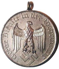 - Die silberne Medaille für 4 Jahre Dienstzeit in der Wehrmacht