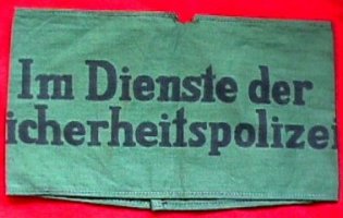 Beamten waren. Schwarze, gotische Buchstaben auf hellgelbem Band, am linken Oberarm getragen.