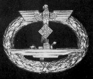 "Ich ordne hiermit für die U-Boots-Besatzungen der Kriegsmarine die Einführung des U-Boots- Kriegsabzeichens an. Das Abzeichen wird durch den B. d. U. (Befehlshaber der U-Boot-Flotte) verliehen. Das Abzeichen kann allen Offizieren, Unteroffizieren und Mannschaften der vor dem Feinde tätigen U-Boote verliehen werden, die sich auf zwei oder mehr Fahrten gegen den Feind bewährt haben. Von dieser Bedingung darf im Falle einer Verwundung abgewichen werden. Die Entscheidung über die Voraussetzungen zur Verleihung des Abzeichens trifft im Einzelfalle der B. d. U. Das Abzeichen wird am Rock, blauen und weißen Jackett, blauer und weißer Messejacke, an der Jacke, am Überzieher und am blauen und weißen Hemd auf der linken Brust, wie das U-Boots-Kriegsabzeichen des Weltkrieges, in und außer Dienst getragen."1 |