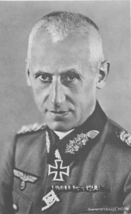 Hermann Hoth trat nach seiner Ausbildung im Preußischen Kadettenkorps auf der Hauptkadettenanstalt Groß-Lichterfelde am 27. Februar 1904 als Fähnrich in das Königlich Preußische Heer ein. Er kam dabei zum 4. Thüringisches Infanterie-Regiment Nr. 72 nach Torgau. Noch im Frühjahr 1904 wurde er dann zur Kriegsschule Danzig kommandiert. Mit dem Rangdienstalter vom 27. Januar 1905 wurde er zum Leutnant befördert. 1907 wurde er dann zum Adjutant des II. Bataillons vom 4. Thüringisches Infanterie-Regiment Nr. 72 ernannt. 1910 wurde er dann an die Kriegsakademie kommandiert. Dort wurde mit dem Rangdienstalter vom 19. Juni 1912 zum Oberleutnant befördert. 1913 wurde er dann zum Regimentsadjutant ernannt. Am 1. April 1914 wechselte er dann zum Großen Generalstab. Mit Ausbruch des 1. Weltkrieges kam er dann zum Generalstab im AOK 8 an der Ostfront. Dort wurde er mit dem Rangdienstalter vom 8. November 1914 zum Hauptmann befördert. Im Jahr 1915 war er dann für etwa ein halbes Jahr Nachrichtenoffizier (Ic) im AOK 10. Im Herbst 1915 wechselte er dann in den Generalstab des XVII. Reservekorps. Inzwischen wurden ihm bereits beide Eisernen Kreuze verliehen. Im Frühjahr 1916 wurde er dann etwa einen Monat lang als Bataillonsführer im Infanterie-Regiment Nr. 342 eingesetzt. 1916 wurde er dann auch zum Chef der Feldflieger-Abteilung 49 ernannt. Im Herbst 1916 wurde er dann in den Stab des Kommandierenden General der Luftstreitkräfte versetzt. Im Sommer 1918 wurde er dann zum Ia der 30. Infanterie-Division ernannt. Als solcher wurde ihm auch das Ritterkreuz des Königlich Preußischen Hausordens von Hohenzollern verliehen. Die Stellung als Ia hatte er auch noch bei Kriegsende inne. Inzwischen trug er auch hamburgische, österreichische und türkischen Orden. Nach dem 1. Weltkrieg wurde er dann in das Reichsheer übernommen. Dabei wurde er im Frühjahr 1920 beim Reichswehr-Infanterie-Regiment 32 eingesetzt. Bei der Bildung des 100.000 Mann-Heeres der Reichswehr kam er dann als Kompaniechef zum 18. Infanterie-Regiment. Am 1. Januar 1921 wurde er als Generalstabsoffizier in das Reichswehrministerium versetzt. Dort wurde er in der Organisations-Abteilung (T 2) eingesetzt. Am 1. Oktober 1923 wurde er dann in den Generalstab des Infanterieführer II nach Schwerin versetzt. Dort wurde er am 1. Januar 1924 zum Major befördert, wobei das Rangdienstalter auf den 1. April 1923 festgelegt wurde. Am 1. Oktober 1925 wurde er dann wieder zum Reichswehrministerium versetzt. Dort kam er diesmal zur Heeres-Ausbildungs-Abteilung (T 4). Am 1. Januar 1929 wurde er dann zum Kommandeur des I. Bataillons vom 4. (Preuß.) Infanterie-Regiment in Stargard ernannt. Als solcher wurde er am 1. Februar 1929 zum Oberstleutnant befördert. Am 1. November 1930 wurde er dann in den Stab vom Gruppenkommando 1 nach Berlin versetzt. Am 1. Februar 1932 wurde er dort zum Oberst befördert. Am 1. Oktober 1932 wurde er zum Kommandeur vom 17. Infanterie-Regiment in Braunschweig ernannt. Am 1. August 1933 wurde er zum 6. Infanterie-Regiment nach Lübeck versetzt. Im Herbst 1933 wurde er dann zur Wehrgauleitung Lübeck versetzt. Am 1. Februar 1934 wurde er zum Kommandant von Lübeck ernannt. Bei der Erweiterung der Reichswehr wurde er am 1. Oktober 1934, unter gleichzeitiger Beförderung zum Generalmajor, zum Infanterieführer III ernannt. Damit wurde er bei der Enttarnung am 15. Oktober 1935 automatisch zum Kommandeur der 18. Infanterie-Division ernannt. Als solcher wurde er am 1. Oktober 1936 zum Generalleutnant befördert. Bis zum 1. April 1938 führt Hoth nun die 18. Infanterie-Division. Am 1. April 1938 wurde Hoth zur Verfügung des OKH gestellt. Anfang November 1938 wurde er dann mit der Aufstellung des XV. Armeekorps (mot.) beauftragt. Dieses übernahm er dann mit Abschluss der Aufstellung am 10. November 1938 als Kommandierender General. Mit dem Rangdienstalter vom 1. November 1938 wurde er zum General der Infanterie befördert. Im Polenfeldzug befehligt er beim Angriff auf Südpolen noch immer das der 10. Armee unterstellte XV. Armeekorps (mot.). Für die Leistungen seines Korps wurde Hoth bereits im September 1939 mit beiden Spangen zu seinen Eisernen Kreuzen ausgezeichnet. Außerdem wurde ihm am 27. Oktober 1939 das Ritterkreuz des Eisernen Kreuzes verliehen. Ende 1939 verlegte er dann mit seinem Korps an die Westfront. Er führte das Korps dann auch im Westfeldzug. In diesem wurde sein Korps dann auch als Gruppe Hoth bezeichnet. Am 30. Juni 1940 wurde sein Korps wieder zum XV. Armeekorps (mot.) umbenannt, er blieb aber weiter der Kommandierende General. Nach Abschluss des Westfeldzuges wurde Hoth am 19. Juli 1940 zum Generaloberst befördert. Mitte November 1940 wurde aus seinem Stab dann der Stab der Panzergruppe 3 gebildet. Zu deren Oberbefehlshaber wurde Hoth nun ernannt. Diese Gruppe führte er dann beim Ostfeldzug zum Angriff auf Mittelrussland. Für die Führung der Gruppe wurde ihm am 17. Juli 1941 das Eichenlaub zum Ritterkreuz des Eisernen Kreuzes verliehen, was ihm persönlich von Adolf Hitler verliehen wurde. Am 7. August 1941 wurde er namentlich im Wehrmachtsbericht genannt: "Am Verlauf dieser gewaltigen Schlacht waren die Armeen des Generalfeldmarschalls von Kluge und der Generalobersten Strauß und Freiherr von Weichs, die Panzergruppen der Generalobersten Guderian und Hoth sowie die Luftwaffenverbände der Generale der Flieger Loerzer und Freiherr von Richthofen ruhmreich beteiligt." Am 18. Oktober 1941 wurde er in einer Sondermeldung und am 19. Oktober 1941 erneut im Wehrmachtsbericht namentlich genannt: "An der Durchführung dieser Operationen waren die Armeen des Generalfeldmarschalls von Kluge, der Generalobersten Freiherr von Weichs und Strauß, sowie die Panzerarmeen der Generalobersten Guderian, Hoth, Hoepner und des Generals der Panzertruppen Reinhardt beteiligt." Im November 1941 gab er sein Kommando ab. Er wurde dafür zum Oberbefehlshaber der 17. Armee ernannt. Er führt dann seine 17. Armee bei de