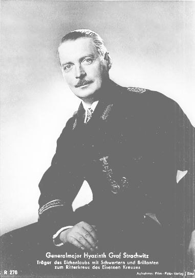 Hyazinth war übrigens nicht der einzige Ritterkreuzträger der Militärfamilie geblieben. Hauptmann Ernst Graf Strachwitz war 1944 als Bataillonskommandeur eines Gebirgsjägerregiments beliehen worden, Mauritz Freiherr von Strachwitz 1945 als Generalleutnant und Kommandeur der 87. Infanteriedivision. Letzterer verstarb 1953 in russischer Kriegsgefangenschaft.