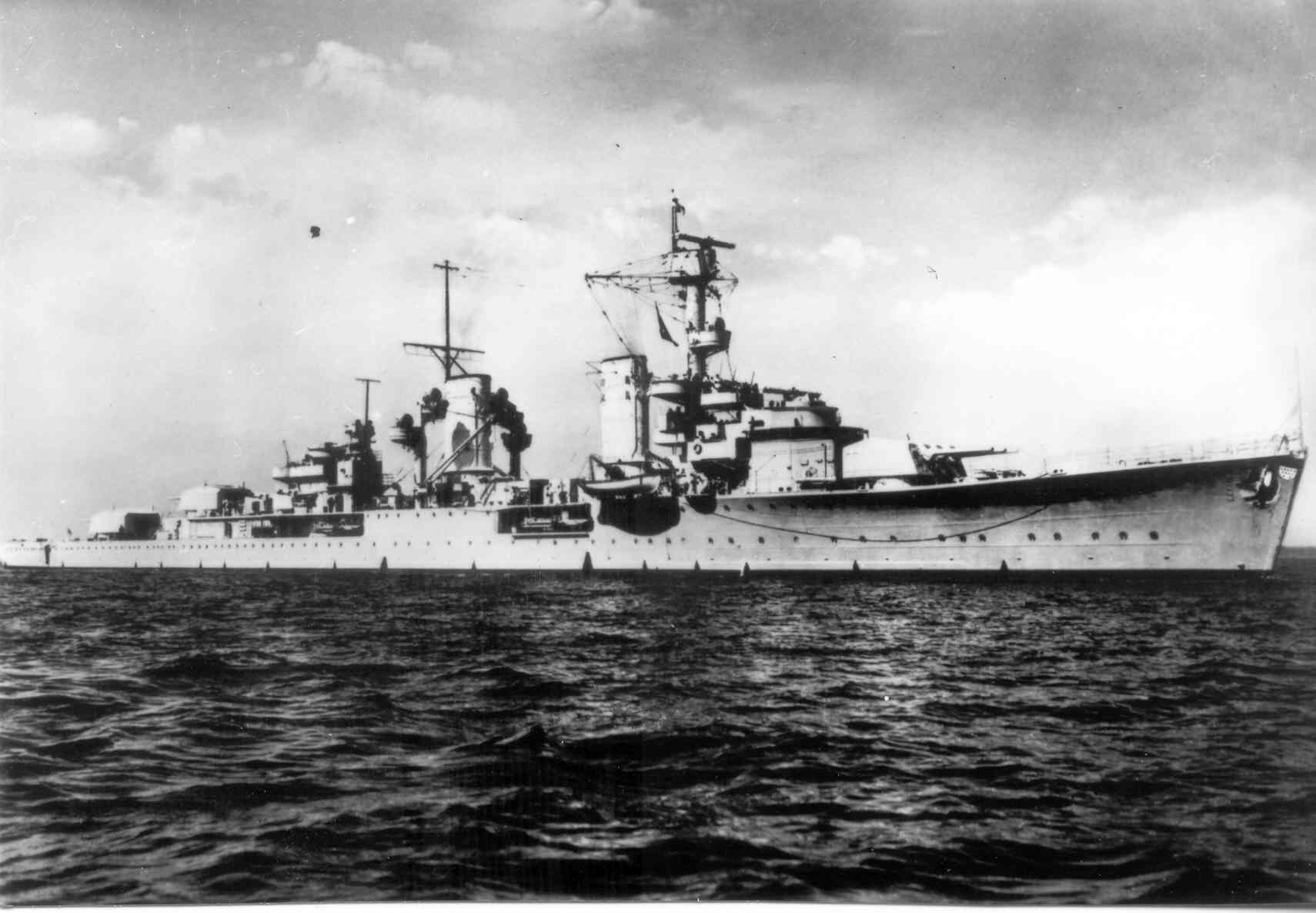 Zerstörern "Richard Beitzen" und "Friedrich Ihn" lief der Kreuzer in den