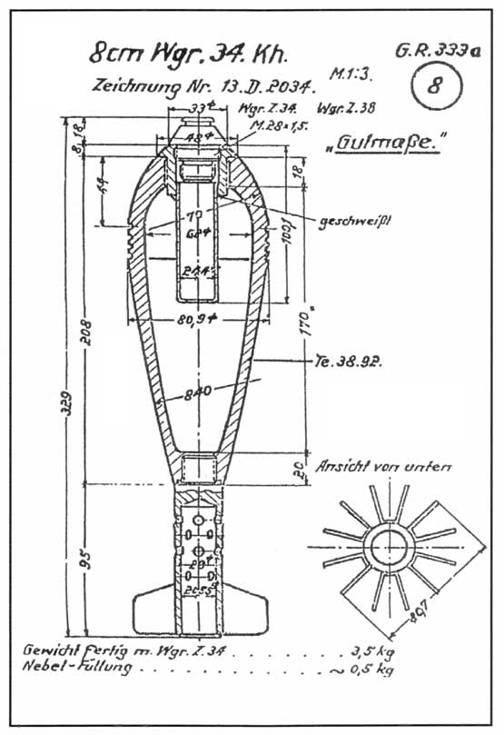 -         10 cm Wurfgranate 35 Üb (mit kleiner Zündladung, Füllung lt. Unterlagen Dresdner Sprengschule „Nebelfüllung“ ?!)
